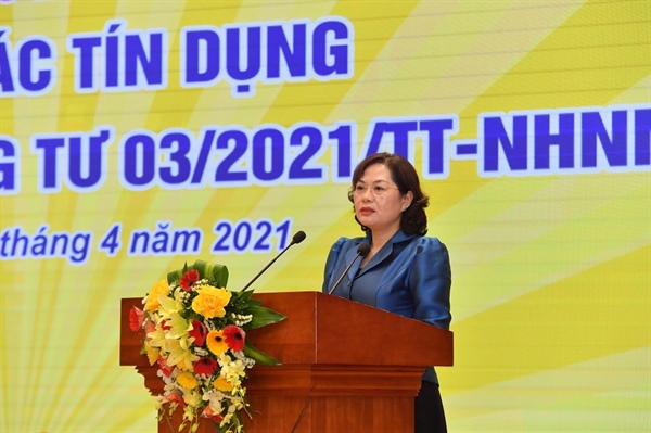 Về các giải pháp hỗ trợ người dân, doanh nghiệp khắc phục khó khăn do ảnh hưởng của dịch bệnh Covid-19, tính đến cuối tháng 3.2021 hệ thống ngân hàng đã cơ cấu lại thời hạn trả nợ cho gần 263.000 khách hàng bị ảnh hưởng bởi dịch Covid-19 với dư nợ hơn 353.000 tỉ đồng; miễn, giảm, hạ lãi suất cho hơn hơn 660.000 khách hàng với dư nợ trên 1,27 triệu tỉ đồng.