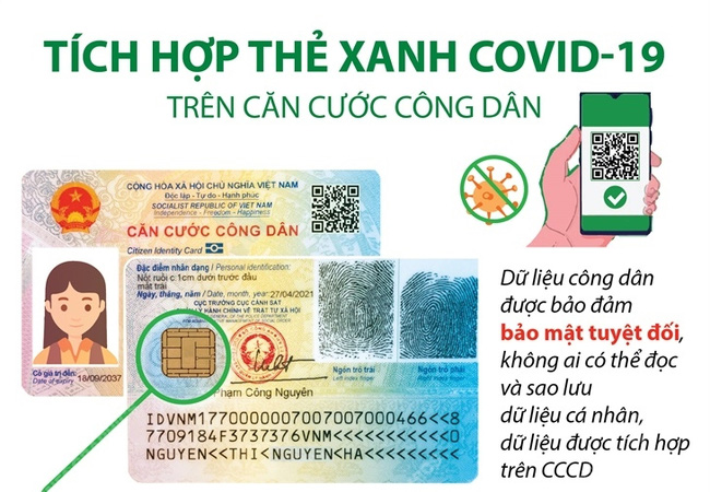 Để kiểm tra được thông tin tiêm chủng, người dân sử dụng ứng dụng VN-eID và quét mã QR trên CCCD có gắn chip. Thông tin về số lượng mũi tiêm, địa điểm tiêm vaccine phòng Covid-19 sẽ được hiển thị đầy đủ. Đây cũng sẽ là căn cứ để lực lượng chức năng tiến hành tích hợp thẻ xanh đối với người đã tiêm đủ 2 mũi, thẻ vàng đối với người tiêm 1 mũi.