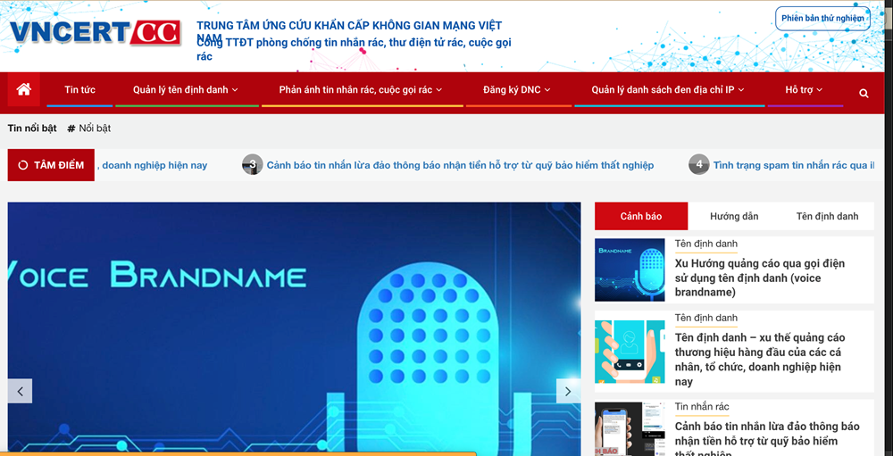 Trung tâm ứng cứu khẩn cấp không gian mạng Việt Nam (VNCERT/CC) thuộc Cục An toàn thông tin, Bộ Thông tin và Truyền thông đã xây dựng và chính thức đưa vào vận hành Cổng thông tin điện tử phòng chống tin nhắn rác, thư điện tử rác, cuộc gọi rác tại địa chỉ chongthurac.vn.