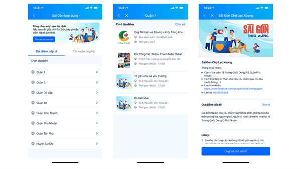 Bên cạnh đó, những người dân cần sự giúp đỡ cũng có thể tìm kiếm các địa điểm tương trợ dựa trên tính năng tra cứu theo quận, huyện một cách chính xác và nhanh nhất.