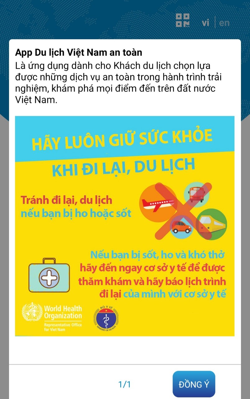 App Du lịch Việt Nam an toàn đã được Tập đoàn công nghệ VietSens (đơn vị đối tác của Tổng cục Du lịch) nghiên cứu, xây dựng, tích hợp đầy đủ các tính năng nhằm phục vụ yêu cầu của khách du lịch, đơn vị cung cấp dịch vụ du lịch và cơ quan quản lý nhà nước. Qua ứng dụng này, khách du lịch có thể tra cứu mức độ an toàn tại địa điểm sắp đến, xem bản đồ số để biết mức độ cảnh báo an toàn, lựa chọn các nhà cung cấp dịch vụ (như nhà hàng, khách sạn, điểm vui chơi giải trí…) và cập nhật thông tin mới nhất về điểm đến cũng như các chính sách của ngành Du lịch.