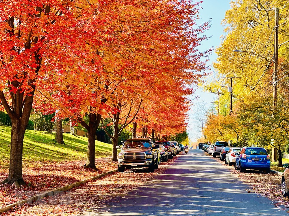 Hai hàng cây ven đường ở thủ đô Washington DC mang màu áo mới