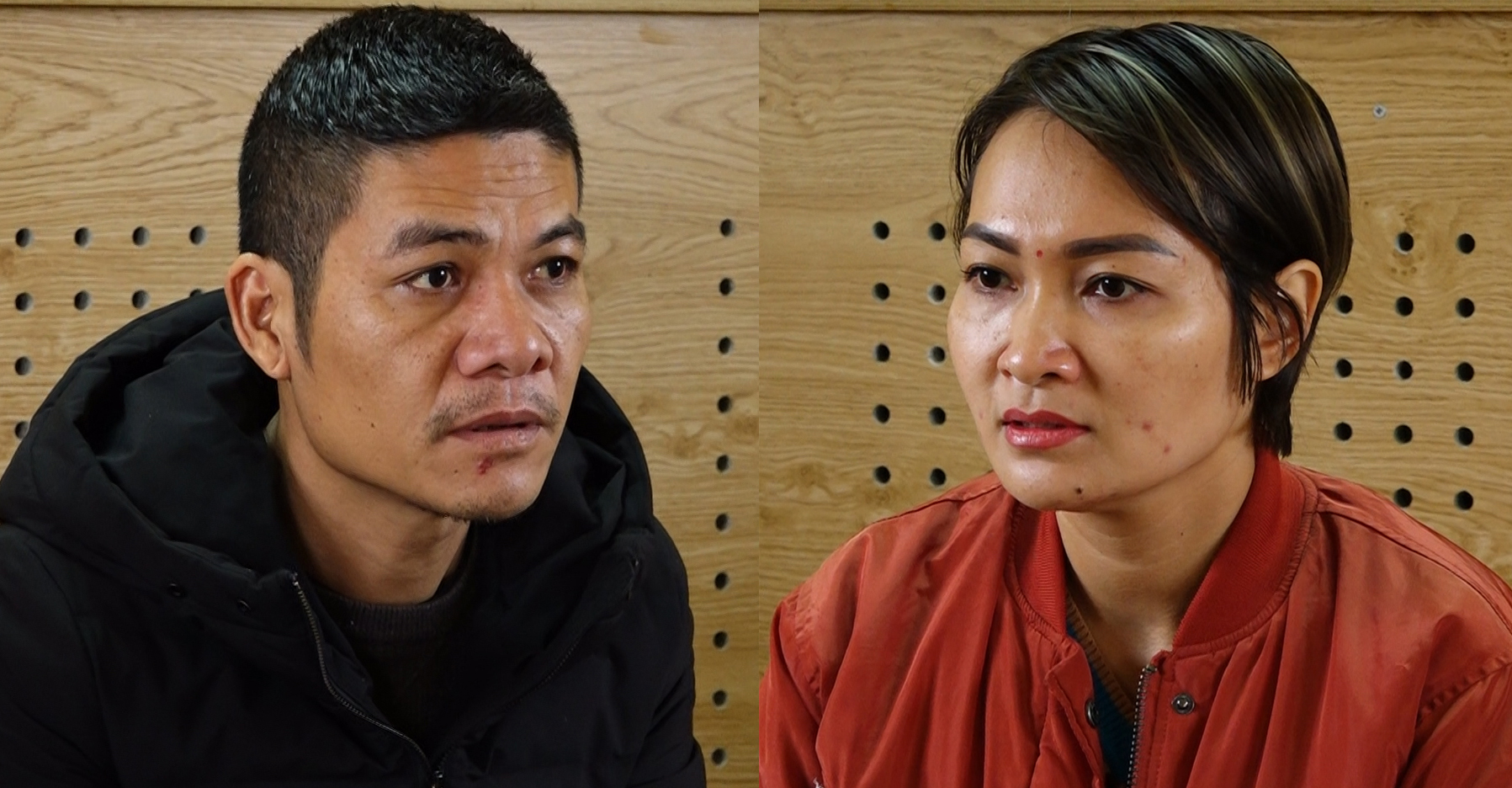 Hai đối tượng Khuất Đình Diễn và Đặng Thị Thu Trang tại cơ quan điều tra