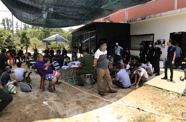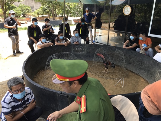 Cơ quuan công an bắt quả tang và lập biên bản đối với 47 đối tượng đang tham gia cá cược đá gà
