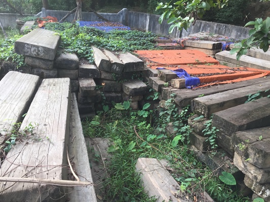 Số gỗ quý hiếm bị khai thác trái phép được tập kết trong khuôn viên của BQL rừng phòng hộ Kỳ Sơn, chờ phương án giải quyết từ nhiều năm nay đang bị hư hỏng