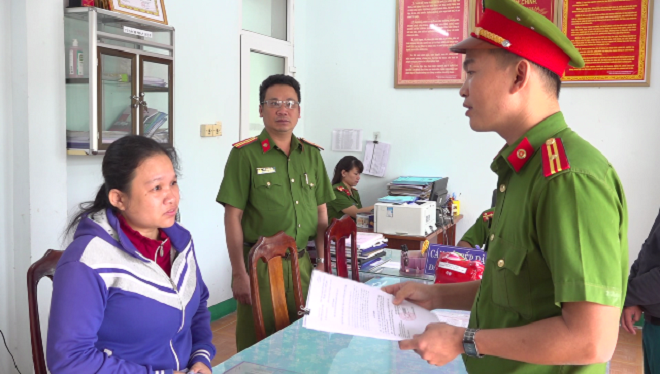 Cơ quan chức năng đọc lệnh khởi tố, bắt tạm giam đối tượng Thùy. Ảnh: CACC