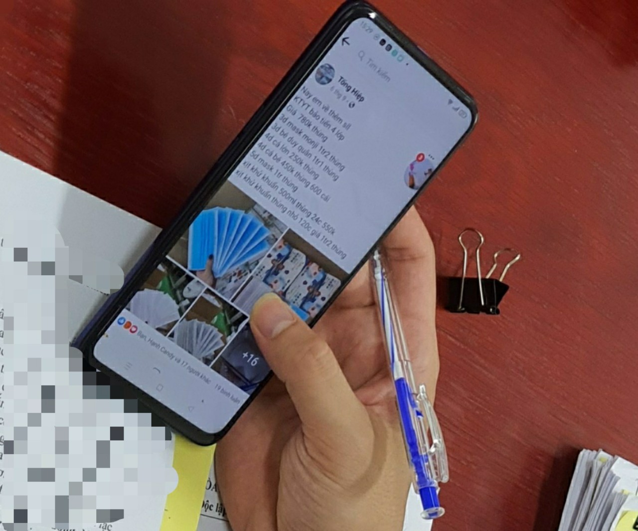 Theo cơ quan công an, từ tháng 4.2021 đến khi bị bắt giữ, Đinh Trung Kiên đã sử dụng nhiều tài khoản facebook khác nhau để đăng tải các bài viết trên trang facebook cá nhân và trong các nhóm về mua bán hàng hóa. Các bài viết của Kiên mang nội dung chuyên mua bán, cung cấp sỉ lẻ các loại khẩu trang với số lượng lớn, người có nhu cầu mua liên hệ qua messenger hoặc qua số điện thoại mà đối tượng này cung cấp.
