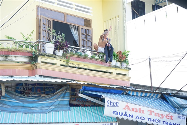 Trong cơn ngáo đá, nam thanh niên đứng trên lan can nhà la hét