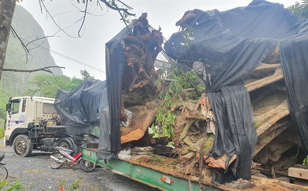 Theo đó, vào ngày 1.7, Trạm Kiểm lâm Long Đại phối hợp với tổ công tác của UBND xã Trường Xuân phát hiện xe ô tô đầu kéo mang BKS 73C-138.72 (gắn logo của công ty vận tải cơ giới Hải Sơn, ở TP. Đồng Hới) vận chuyển 2 cây gỗ lớn, đường kính hơn 1 mét, chiều dài hơn 10 mét chạy trên đường liên thôn từ hướng bản Khe Ngang về xuôi.