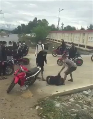 Theo đoạn clip ghi lại, sau giờ tan học trưa ngày 29/10, có 2 đối tượng đã hành hung rất dã man; đấm, đá liên tiếp vào mặt 1 học sinh nam. Không dừng lại, 1 đối tượng còn dùng đá ném thẳng vào người rồi đạp nam sinh này rơi xuống hào nước ở phía bên đường. Do bị hành hung thô bạo, nam sinh trên không thể chống cự, chỉ biết ôm đầu nằm dưới đất...