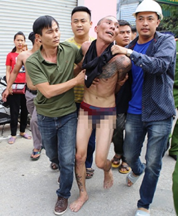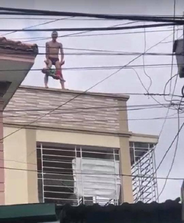 Khoảng 9 giờ ngày 21.11, trên tầng 2 ngôi nhà ở ngõ 2, đường Nguyễn Thúc Tự, phường Vinh Tân (TP Vinh), người dân hoảng hốt khi thấy một thanh niên ngáo đá cởi trần, ôm bé trai khoảng 1 tuổi đứng trên mái ngói. Phát hiện sự việc, người dân đã khuyên nhủ thanh niên xuống tầng và thả bé trai ra. Tuy nhiên, đối tượng hung hăng, vừa bế, xách ngược bé trai vừa la hét và di chuyển trên các mái nhà. Đối tượng liên tục la hét, kích động: "Tôi muốn làm người lương thiện mà người ta không cho..." và lấy gạch trên nóc nhà ném xuống.
