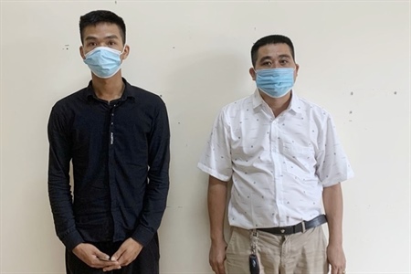 Hai đối tượng Đào Nhật Vũ (áo đen) và Nguyễn Văn An vừa bị khởi tố