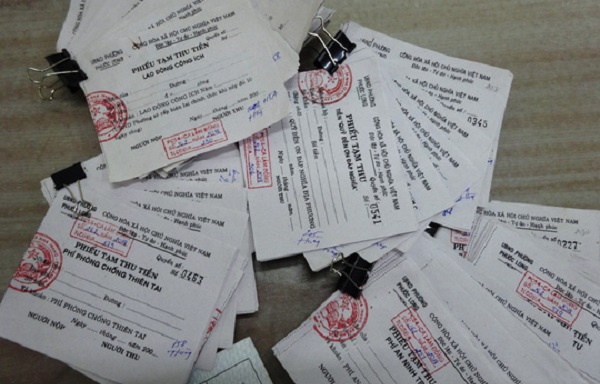 Các loại giấy tờ phiếu thu giả mạo có dấu xác nhận của cơ quan chức năng
