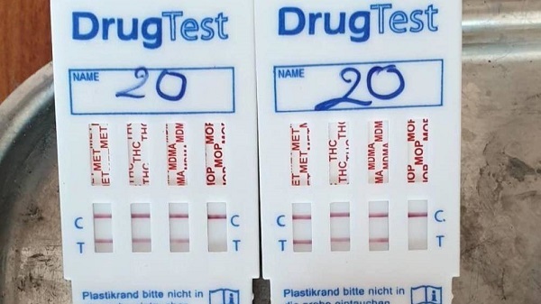 Đó là trường hợp của lái xe B.V.H (52 tuổi, trú tại TP. Kon Tum) của HTX P.T. Qua lấy 2 mẫu nước tiểu của lái xe H. test nhanh 4 mẫu ma túy, kết quả đều dương tính với chất ma túy.