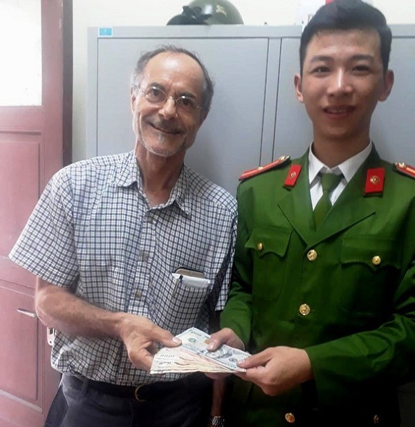 Công an TP Vinh trao trả tài sản cho ông Dal Maso Guido. Ảnh Hữu Trọng