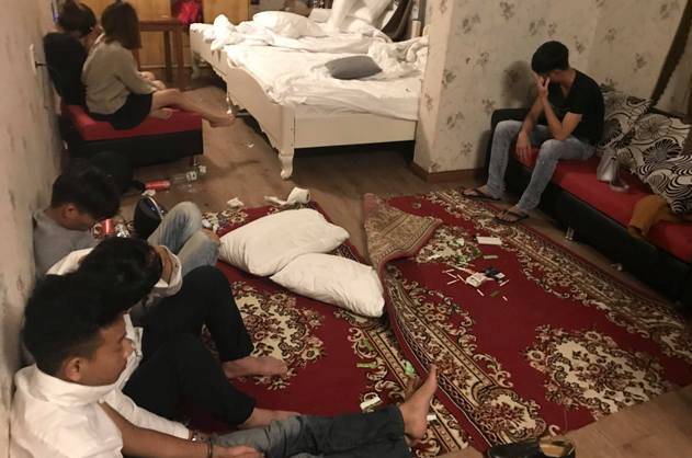 Nhận thấy có vấn đề bất thường, cơ quan công an đã kiểm tra phòng của 18 khách không được đăng ký lưu trú thì phát hiện nhóm nam nữ thanh niên này có dấu hiệu đang sử dụng ma túy. Trong đó, có 6 đối tượng tàng trữ chất ma túy. Lực lượng công an đã test nhanh và kết quả cho thấy 18 nam nữ nói trên đều dương tính với ma túy.