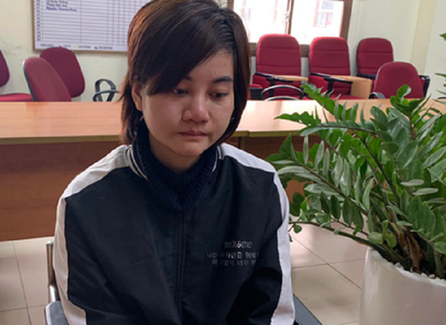 Đối tượng Hoàng Huệ Tâm tại cơ quan công an (Ảnh: PLO)