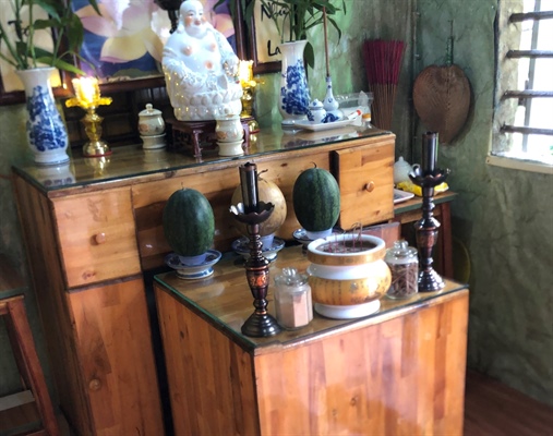 Cách bài trí bàn thờ theo "Nhất quán đạo" tại nhà bà Nguyễn Thị Huê. Ảnh: NL