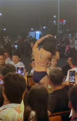 Theo đó, vào tối 14.2, mạng xã hội xuất hiện clip quay lại cảnh nhiều thanh niên mặc bikini nhảy múa phản cảm trước rất đông thực khách. Chưa dừng lại, những người này còn “gợi ý” thực khách nhét tiền vào nơi nhạy cảm trên cơ thể. Sự việc diễn ra từ hơn 20h ngày 14.2 đến hơn 0h ngày hôm sau.