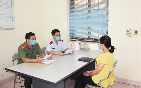 Thanh tra Sở Thông tin và Truyền thông và Phòng An ninh chính trị nội bộ, Công an tỉnh Hà Nam làm việc với bà P.T. L. Ảnh: CTTĐT Hà Nam