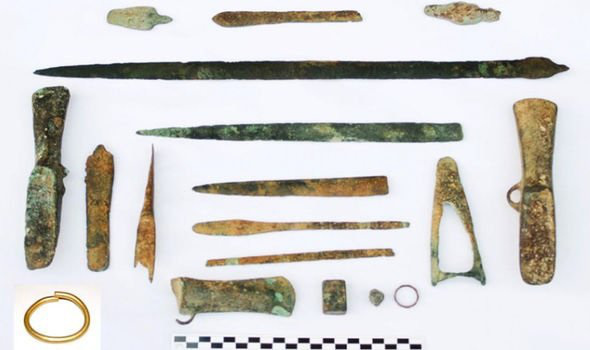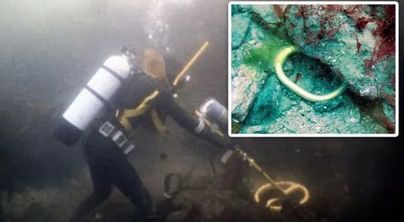 Một thanh kiếm bằng đồng và ba chiếc vòng đeo tay bằng vàng cũng được tìm thấy bên trong con tàu đắm. Tuy nhiên, phần thân chính của con tàu được cho là đã hư hỏng hoàn toàn.