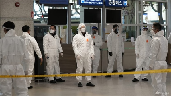 Nhân viên y tế được triển khai để hướng dẫn khách du lịch tại Sân bay Quốc tế Incheon, Hàn Quốc (Ảnh: AP)