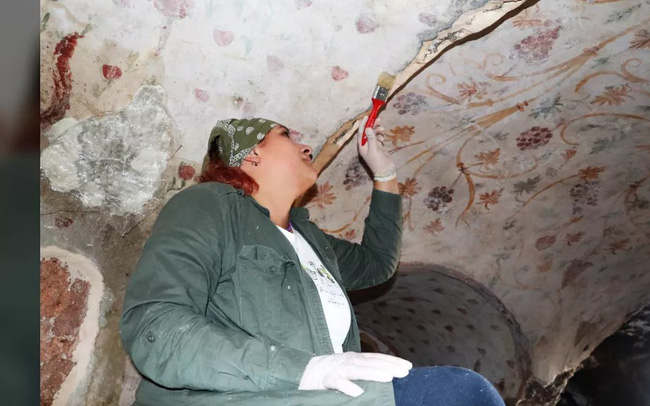 Những hoa văn trang trí độc đáo của ngôi mộ cổ đại lộ ra sau quá trình trùng tu (Ảnh: Blaundos Archaeological Excavation Project)