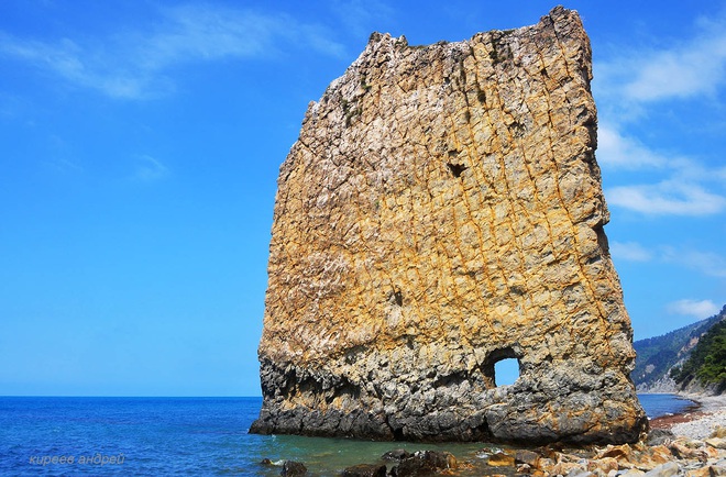 Gần chân tảng đá nguyên khối là một cái lỗ kỳ dị không rõ nguồn gốc. Một số người tin rằng tảng đá đã được sử dụng để phòng thủ trong chiến tranh Caucasian. Nhận định này được hỗ trợ bởi một sự việc được mô tả bởi nhà văn, nhà báo người Nga S.Vasyukov. Ông tuyên bố từng nhìn thấy một chiến hạm Nga bắn 4 quả đạn vào tảng đá nguyên khối. Ông nói: "Mặc dù dấu vết của những viên đạn đại bác có thể nhìn thấy nhưng vách đá không bị phá hủy".