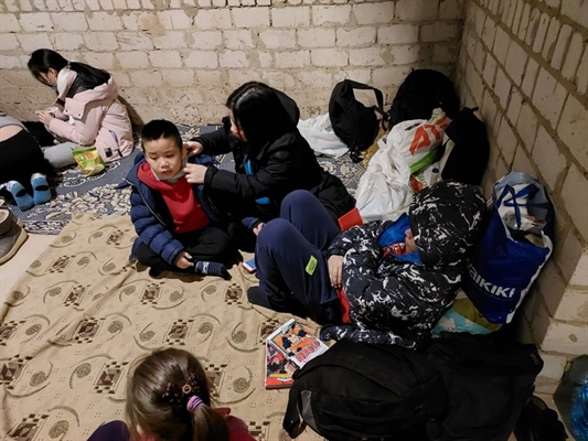 Một gia đình người Việt ở TP Khakiv ở trong hầm trú ẩn Ảnh: NVCC