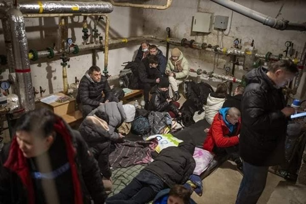 Cảnh người dân ở Kyiv xuống tầng ngầm tránh đạn. Ảnh do ông Nguyễn Văn Loan cung cấp