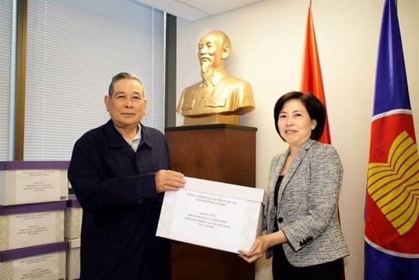 Tổng Lãnh sự quán Việt Nam tại Canada trao khẩu trang của Chính phủ tặng cộng đồng người Việt