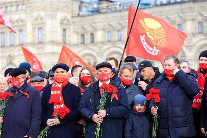 Ngày 7.11, nhân kỷ niệm 104 năm Cách mạng Tháng Mười vĩ đại, đoàn nghị sỹ của Đảng Cộng sản Liên bang Nga (KPRF) tại Duma Quốc gia (Hạ viện), Ban chấp hành Trung ương KPFR do Chủ tịch KPRF Gennady Ziuganov dẫn đầu, các chi bộ KPFR ở thủ đô Moskva và tỉnh Moskva, cùng các phong trào yêu nước cánh tả "Ủng hộ quân đội," “Trẻ em chiến tranh,” “Liên minh sỹ quan Xô viết,” “Hội Liên hiệp Phụ nữ toàn Nga-Niềm hy vọng của nước Nga”, Đoàn Thanh niên Cộng sản Komsomol, "Mặt trận cánh tả," "Vì chủ nghĩa xã hội mới,” cùng đông đảo người ủng hộ đã tiến hành đặt hoa tại lăng Vladimir I. Lenin và Khu tưởng niệm các Anh hùng Cách mạng bên Tường Điện Kremlin, đặt hoa trước Tượng đài Nguyên soái Giukov.
