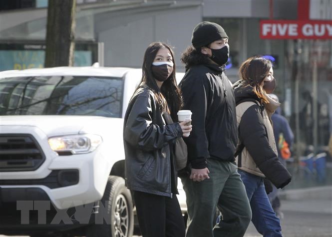 Người dân đeo khẩu trang phòng lây nhiễm dịch Covid-19 tại Vancouver, British Columbia, Canada. (Ảnh: THX/TTXVN)