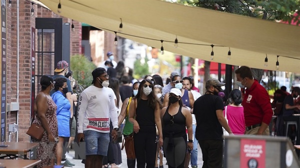 Người dân đeo khẩu trang phòng lây nhiễm Covid-19 tại một khu chợ ở New York, Mỹ, ngày 7.9