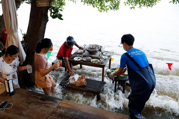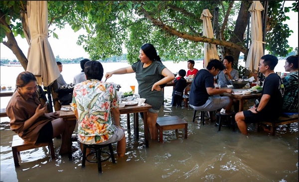 Nhà hàng Thái Lan gây sốt vì để khách ngồi ăn giữa nước lũ