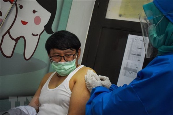 Tiêm thử nghiệm vắcxin ngừa Covid-19 tại trung tâm y tế ở Bandung, Indonesia