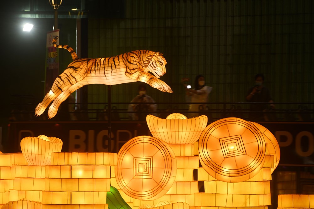 Đèn lồng hình con Hổ biểu tượng cho Năm Nhâm dần trưng bày tại Singapore. (Ảnh: THX/TTXVN)