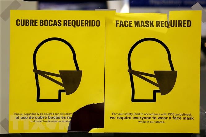 Biển thông báo yêu cầu đeo khẩu trang được dán trên cửa của một cửa hàng tại thành phố New Orleans, bang Louisiana, Mỹ ngày 11.1.2022. (Ảnh: THX/TTXVN)