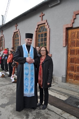 Tác giả cùng cha cố trước nhà thờ Lviv năm 2014