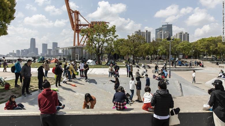 Trẻ em chơi trong một công viên ven sông ở Thượng Hải, Trung Quốc (Ảnh: CNN)