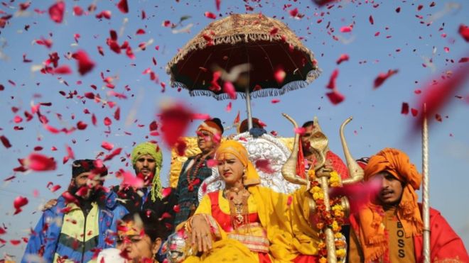 Các đám rước đầy màu sắc nhằm tôn vinh tôn giáo của các giáo phái khác nhau là điểm nhấn nổi bật của Kumbh Mela bên cạnh nghi lễ tắm sông