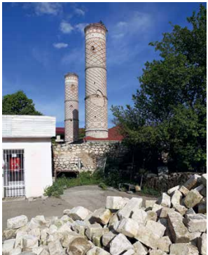 Thánh đường Hồi giáo Govhar Agha ở Shusha. thế kỉ 19. Nó được xây dựng bởi kiến trúc sư người Karabakh của Azerbaijan, Kerbalai Sefikhan. Trong những năm bị Armenia chiếm đóng, các đồ trang trí và các yếu tố Azerbaijan ban đầu đã bị phá hủy và các nỗ lực đã được thực hiện để biến nó thành  một Nhà thờ Hồi giáo "Ba Tư"