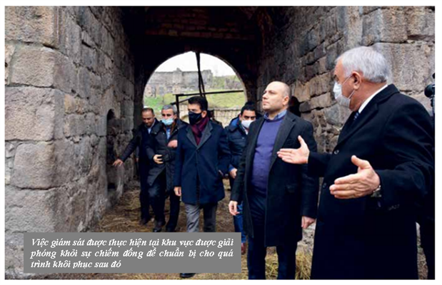 Theo sắc lệnh của Tổng thống Ilham Aliyev “Về việc tổ chức chính quyền đặc biệt tạm thời tại các lãnh thổ được giải phóng của Cộng hòa Azerbaijan”, ngày 29 tháng 10 năm 2020, đại diện của Bộ Văn hóa tiếp tục giám sát các hoạt động của họ nhằm kiểm soát hoạt động kiểm đếm sơ bộ và bảo vệ an toàn các di tích lịch sử và văn hóa trong khu vực lãnh thổ được giải phóng. Đến nay, có tổng số có 314 di tích lịch sử và văn hóa được đăng ký cấp quốc gia được kiểm tra (vào tháng 6). Hơn nữa, việc giám sát đã được thực hiện trên 125 di tích (di tích mới được phát hiện) với các đặc điểm lịch sử, kiến trúc và khảo cổ học chưa được đăng ký cấp quốc gia trong khu vực lãnh thổ đó. Việc giám sát đưa đến một kết luận rằng hầu hết các di tích lịch sử và văn hóa có yếu tố lịch sử, kiến trúc và khảo cổ học đã bị phá hủy hoàn toàn bởi những kẻ xâm lược.