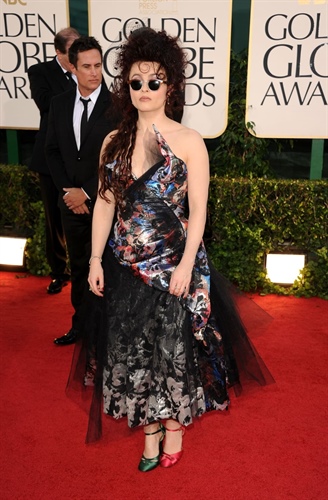Đừng để chiếc váy công phu của Helena Bonham Carter đánh lạc hướng bạn khỏi tuyên bố thời trang trên đôi chân của cô ấy - đôi giày màu xanh lá cây và… đỏ tại Lễ vinh danh Quả cầu vàng năm 2011. Ảnh: Getty