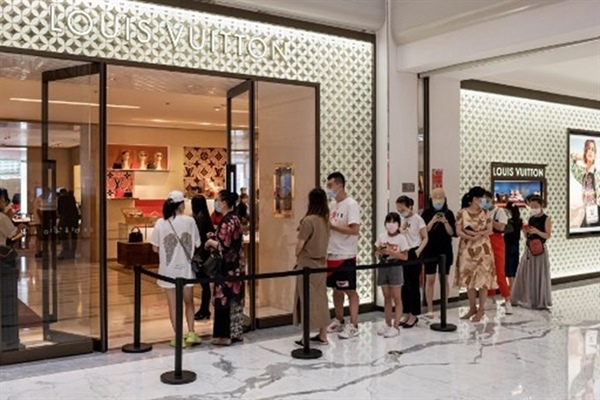 Mọi người xếp hàng đeo khẩu trang khi đi mua sắm trong đại dịch Covid-19. Ảnh: AFP