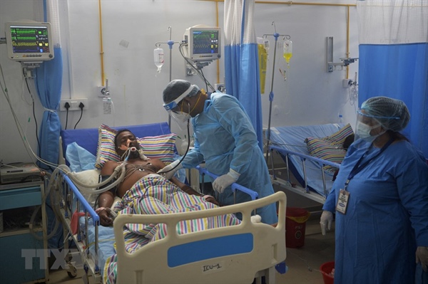 Nhân viên y tế điều trị cho bệnh nhân Covid-19 tại bệnh viện ở ngoại ô Siliguri, Ấn Độ. Ảnh: THX/TTXVN