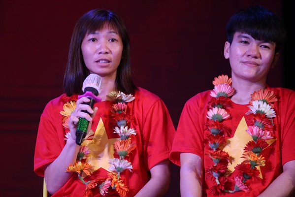 Đại diện đội tuyển nữ Việt Nam tham dự buổi giao lưu gồm: HLV Mai Đức Chung, trợ lý Đoàn Thị Kim Chi, Nguyễn Thị Kim Hồng cùng 11 cầu thủ: Huỳnh Như (đội trưởng), Nguyễn Thị Tuyết Dung, Nguyễn Thị Bích Thùy, Trần Thị Thùy Trang, Phạm Hải Yến, Trần Thị Kim Thanh, Trần Thị Thu, Trần Thị Phương Thảo, Nguyễn Thị Mỹ Anh, Nguyễn Thị Thanh Nhã và Nguyễn Thị Tuyết Ngân. Riêng cầu thủ Chương Thị Kiều không thể tham dự vì có việc.