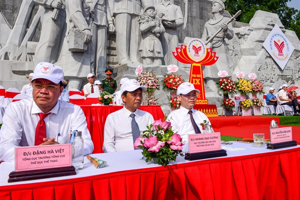 Đến dự có các đồng chí: Chẩu Văn Lâm, Ủy viên BCH Trung ương Đảng, Bí thư Tỉnh ủy, Trưởng Đoàn đại biểu Quốc hội tỉnh; Nguyễn Văn Sơn, Phó Bí thư Tỉnh ủy, Chủ tịch UBND tỉnh; Hoàng Đạo Cương, Thứ trưởng Bộ VHTTDL; Tổng Cục trưởng Tổng cục TDTT Đặng Hà Việt cùng 29 đoàn các khối diễu hành, đồng diễn với trên 4.000 người tham gia.