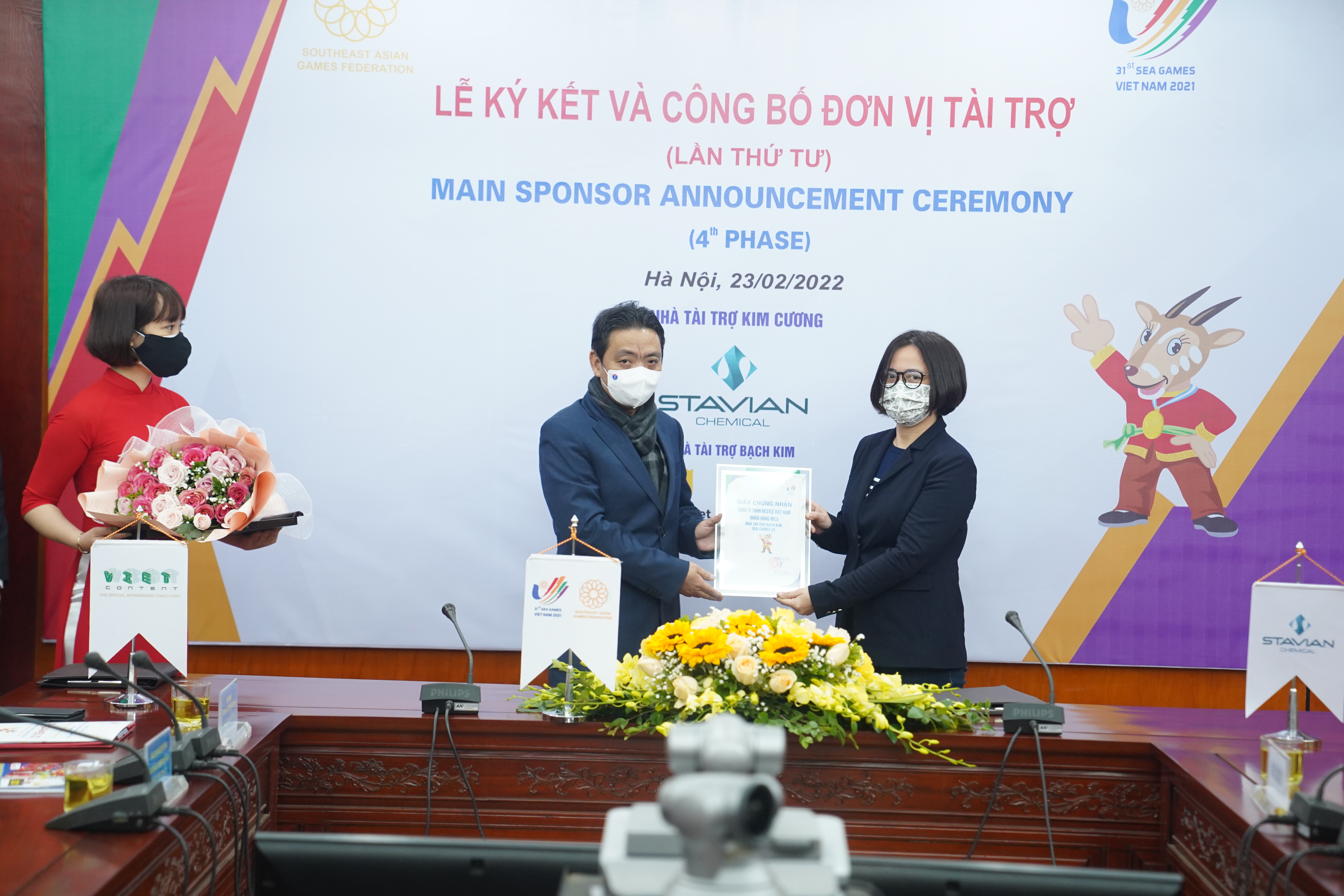 Với lễ công bố này Công ty cổ phần Stavian Hóa chất đã trở thành nhà tài trợ Kim cương thứ 6 của Đại hội. Bà Vũ Thùy Linh – Giám đốc Truyền thông & Quan hệ công chúng Stavian Chemical cho biết, Stavian Chemical rất vinh dự khi trở thành nhà tài trợ Kim cương của SEA Games 31. “Thông qua hoạt động này, chúng tôi mong muốn có thể đóng góp cho sự phát triển của nền thể thao Việt Nam nói riêng và các hoạt động thể thao tại khu vực Đông Nam Á nói chung”, bà Vũ Thuỳ Linh nhấn mạnh.