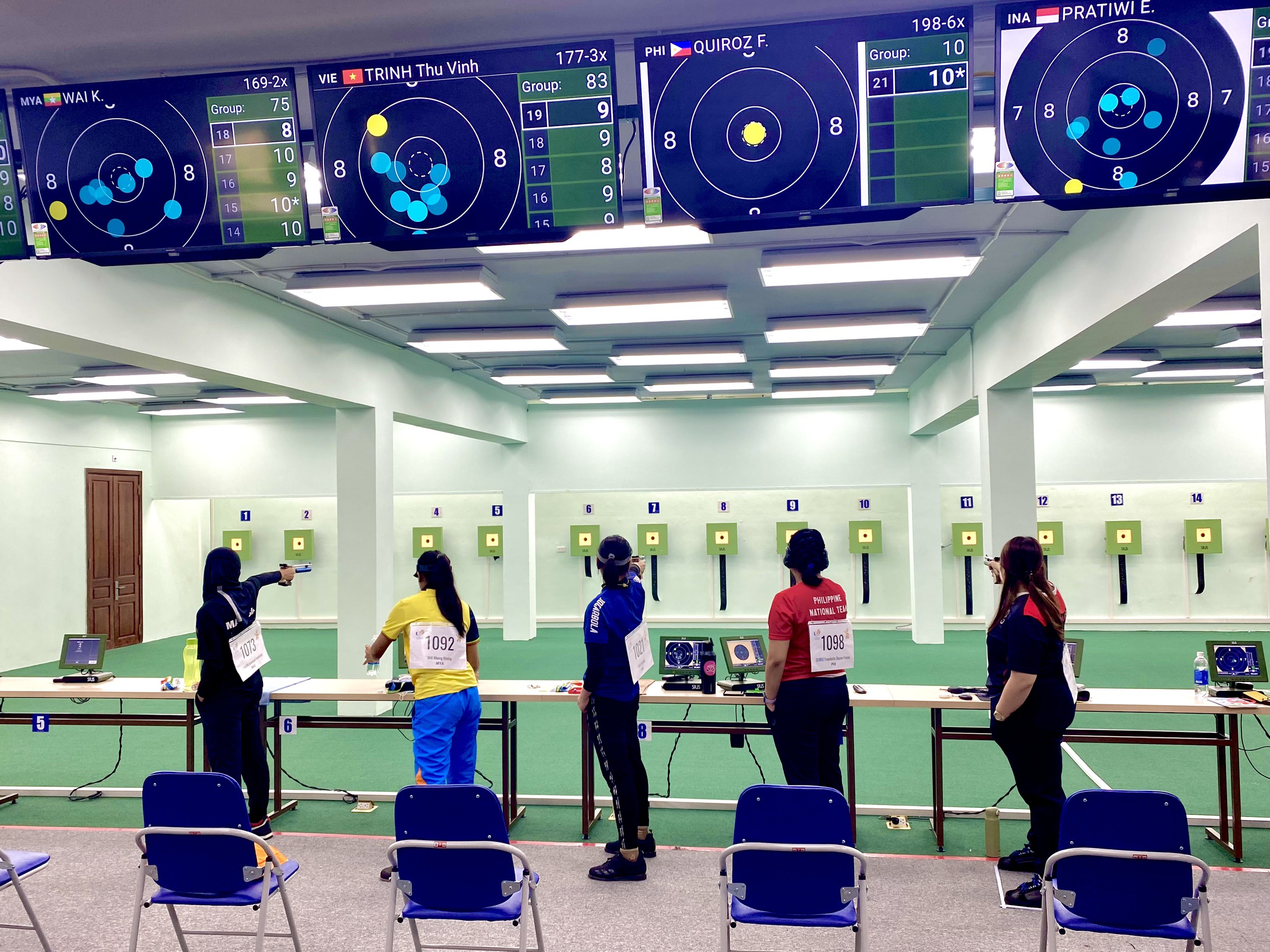 Ở nội dung 10m súng ngắn hơi, 3 VĐV Trịnh Thu Vinh, Triệu Thị Hoa Hồng và Bùi Thuý Thu Thuỷ đã xuất sắc dành tấm HCB đồng đội nữ với tổng số 1.695 điểm. HCV và HCĐ lần lượt thuộc về Singapore (1.697 điểm) và Thái Lan (1.687 điểm).